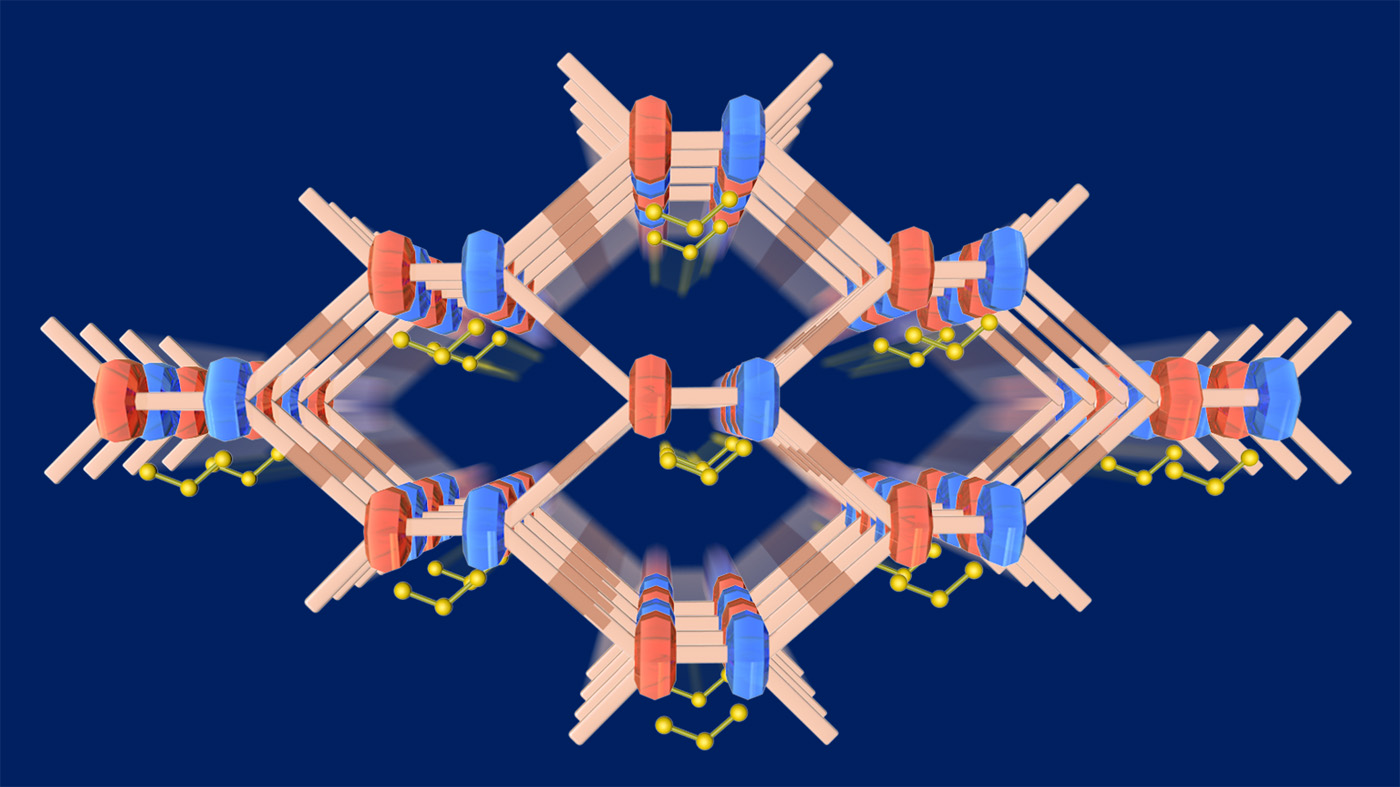 Crystalline framework structures made of organic polymers are a particularly interesting class of materials. They are characterised by their high porosity, comparable to a sponge, but with pores measuring only a few micrometres at most. These materials can exhibit special functionalities, which make them interesting for certain applications in electrochemical energy storage devices. For example, they could act as ‘hosts’ for sulphur compounds such as polysulphides in the electrodes of lithium-sulphur batteries. The idea is that the polysulphides could bind to the inner surfaces of pores in the COF structures and react there to generate elemental sulphur again. However, this has not yet worked properly.