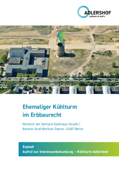 Exposé: Aufruf zur Interessenbekundung pdf (4,72 MB)Ehemaliger Kühlturm im Erbbaurecht. Gerhard-Sedlmayr-Straße / Bereich Groß-Berliner Damm, 12487 Berlinpdf (4,72 MB) Exposé: Aufruf zur Interessenbekundung pdf (4,72 MB)Ehemaliger Kühlturm im Erbbaurecht. Gerhard-Sedlmayr-Straße / Bereich Groß-Berliner Damm, 12487 Berlinpdf (4,72 MB)