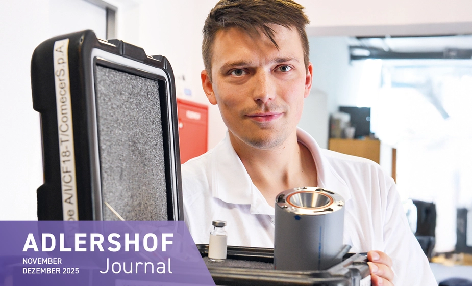 In solchen Zeiträumen kann Axel Hentsch nicht denken. Er ist Chemiker bei der Alliance Medical Radiopharmazie Berlin GmbH, die für nuklearmedizinische Untersuchungen kurzlebige Radiotracer herstellt. Äußerst eng getaktet. Denn die Ware ist verderblich. Genauer gesagt: Sie hat eine kurze Halbwertszeit. Also jene Zeitspanne, in der die Hälfte radioaktiver Atomkerne eines Stoffes zerfallen ist und sie sich in andere Atomkerne umgewandelt haben. Die Firma stellt ein radioaktives Isotop von Fluor her: Fluor-18 (¹⁸F). „Das 18F-Atom wird chemisch in die Tracer eingebaut, um Krankheitsprozesse im Körper anzuzeigen“, erklärt Hentsch. Der Stoff wird in der medizinischen Positronen-Emissions-Tomographie (PET) als Tracer eingesetzt. „Es zerfällt mit einer Halbwertszeit von rund 110 Minuten und dient der Anreicherung in Stoffwechselprozessen“, erklärt Hentsch. „Etwa dem erhöhten Glukoseverbrauch von Krebszellen.“ Durch ihren Hunger nach Zucker werden Krebsherde sichtbar gemacht. Die relativ kurze Halbwertszeit des Fluor-18 bedeutet auch, dass die Strahlenbelastung für Patientinnen und Patienten schnell abklingt, wodurch diese kaum höher als bei einer Röntgenaufnahme ist.
